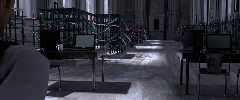 Above is an animation of my mood and camera match to my mood change and camera change. I first started by creating a camera projection of the original image from the movie. I then began to recreate the image using perspective lines as a guide to achieve the match. Then I placed my lights and matched the angle and intensity of the original image. After all assets and lights where integrated, I then began to come up with my mood and camera change. I decided to go for an over the shoulder shot to stick with the mood of intensity. I then pushed the mood by tinting the lights blue, adding fog, and adding more contrast to the image. I then further matched the mood by adding aditional color correction in Nuke.